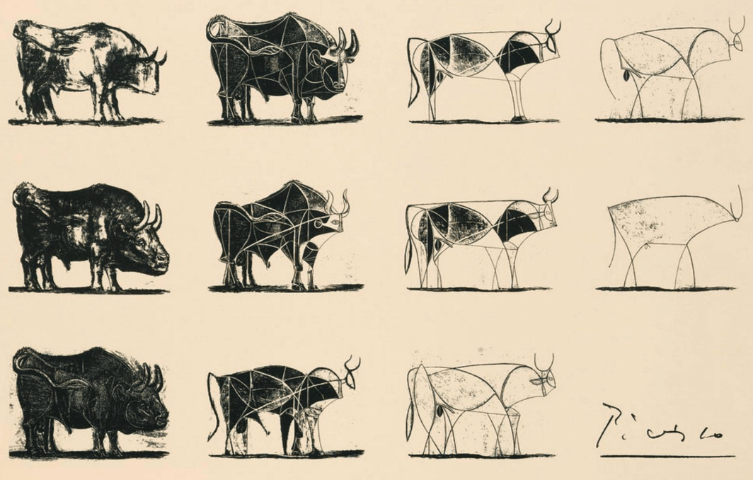 We are all familiar with Picasso’s “The Bull” series, in which he progressively simplifies the image of a bull down to its most basic, yet still recognizable form. Steve Jobs was famously inspired by this concept, leading him to advocate for simplicity and elegance in design and technology above countless features and excessive complexity. Distill a concept even as complex as software or UX down to its essence, and what you are left with is something beautiful and elegant that fulfills its purpose with minimal fuss.